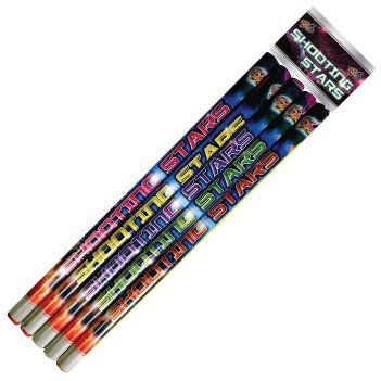 A pack of 5 roman candles ejecting coloured crackling stars, each candle having its own unique colour.